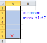 Совокупность ячеек принято называть в терминологии Excel диапазоном.