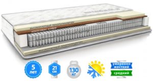 При возникновении сомнений в выборе жесткости стоит обратить внимание на матрас София из каталога «MatrasLuxe». При минимальных размерах стоимость матраса составит 3 044 гривны. Удобная система подбора в карточке товара поможет выбрать размер матраса под стандартные размеры кровати. Система автоматически отобразит стоимость товара. Детализированная фотография поможет самостоятельно изучить наполнители и установленный пружинный блок.